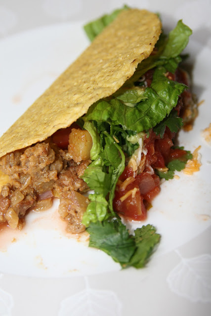 - Crispy corn tortillas--the shaped stand-up ones (Trader Joe's makes great ones in a pack of 12)--you will probably use about 10 or so...depending on how much you fill them